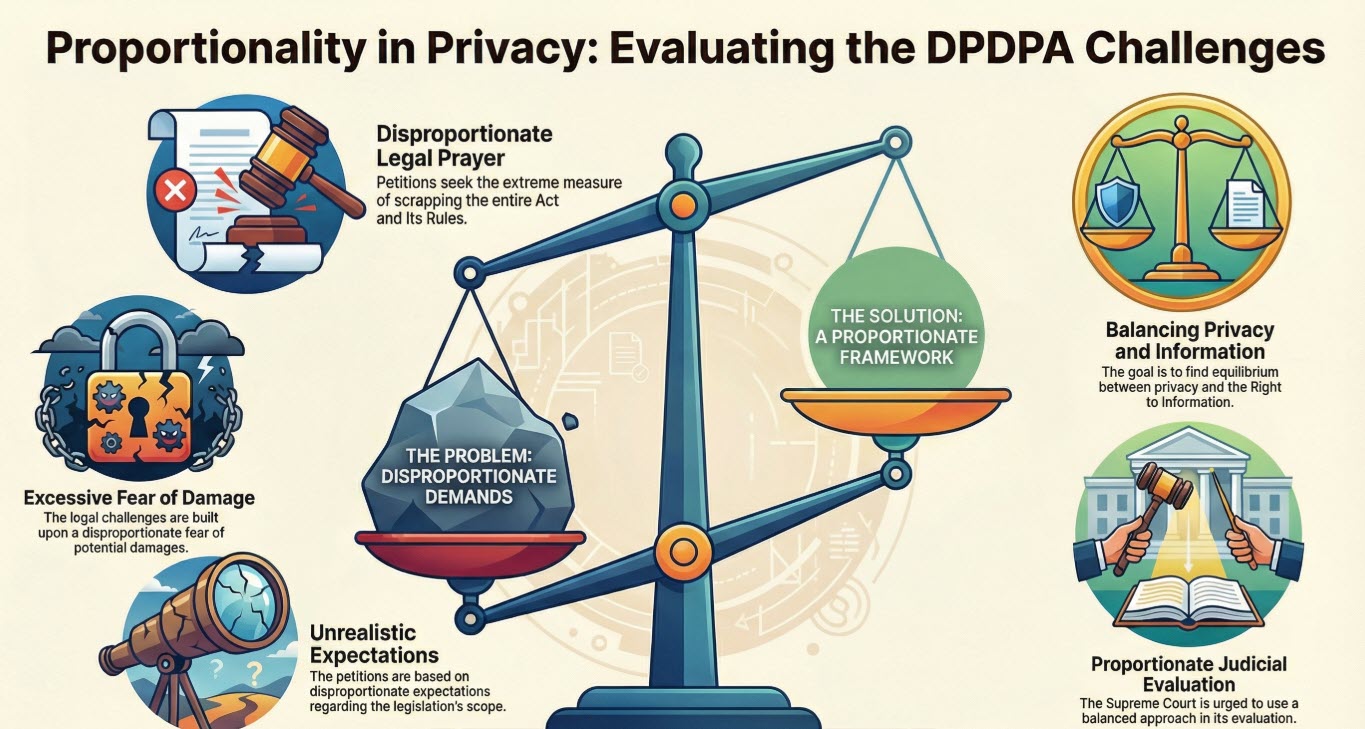 The petition says that Sections 17(1)(c) and 17(2)(a) and 17(2)(b) empowers “Disproportionate surveillance” by granting sweeping exemptions both to State and Non-State instrumentalities” without any objective scrutiny or statutory responsibility, under garb of crime preventin. It also alleges that the collection can be indiscriminate and can be used for policing using predictive algorithms. The lack of safeguards is allegedely failing the proportionality test. The petitioner states that there is no legitimate reason to exempt state actors from being bound by statutory obligations under the DPDPA. even for research and statistical purposes.