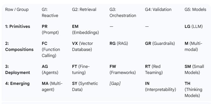The Four rows are Primitive, Compositions, Deployment and Emerging terms.